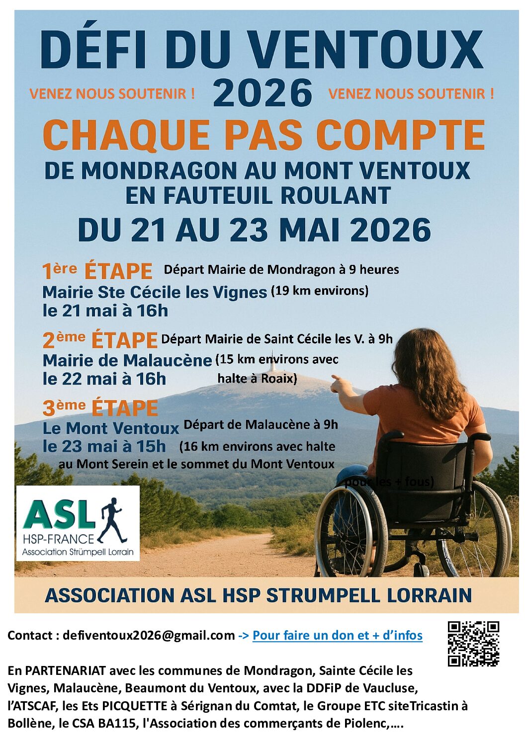 DEFI DU VENTOUX 2026 – CHAQUE PAS COMPTE – DE MONDRAGON AU MONT VENTOUX EN FAUTEUIL ROULANT –