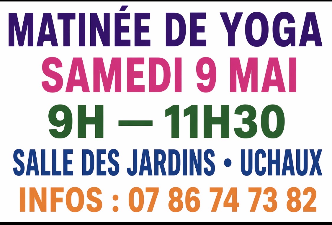 STAGE DE YOGA – SAMEDI 09 MAI 2026 DE 9H00 à 11H30 – SALLE DES JARDINS UCHAUX –
